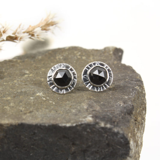 Compass Stud Earrings with Rose-cut Black Spinel (Sterling Silver)