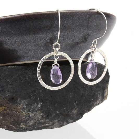 Compass Stud Earrings with Rose-cut Amethyst (Sterling Silver)