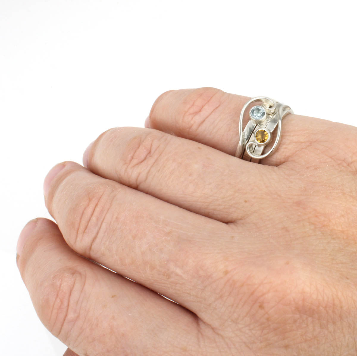 This sparkly blue topaz and sterling silver ring is handcrafted and made to order. Wear it by itself, or customize a stack of skinny bands and coordinating gemstone rings - the possibilities to mix and match are endless.