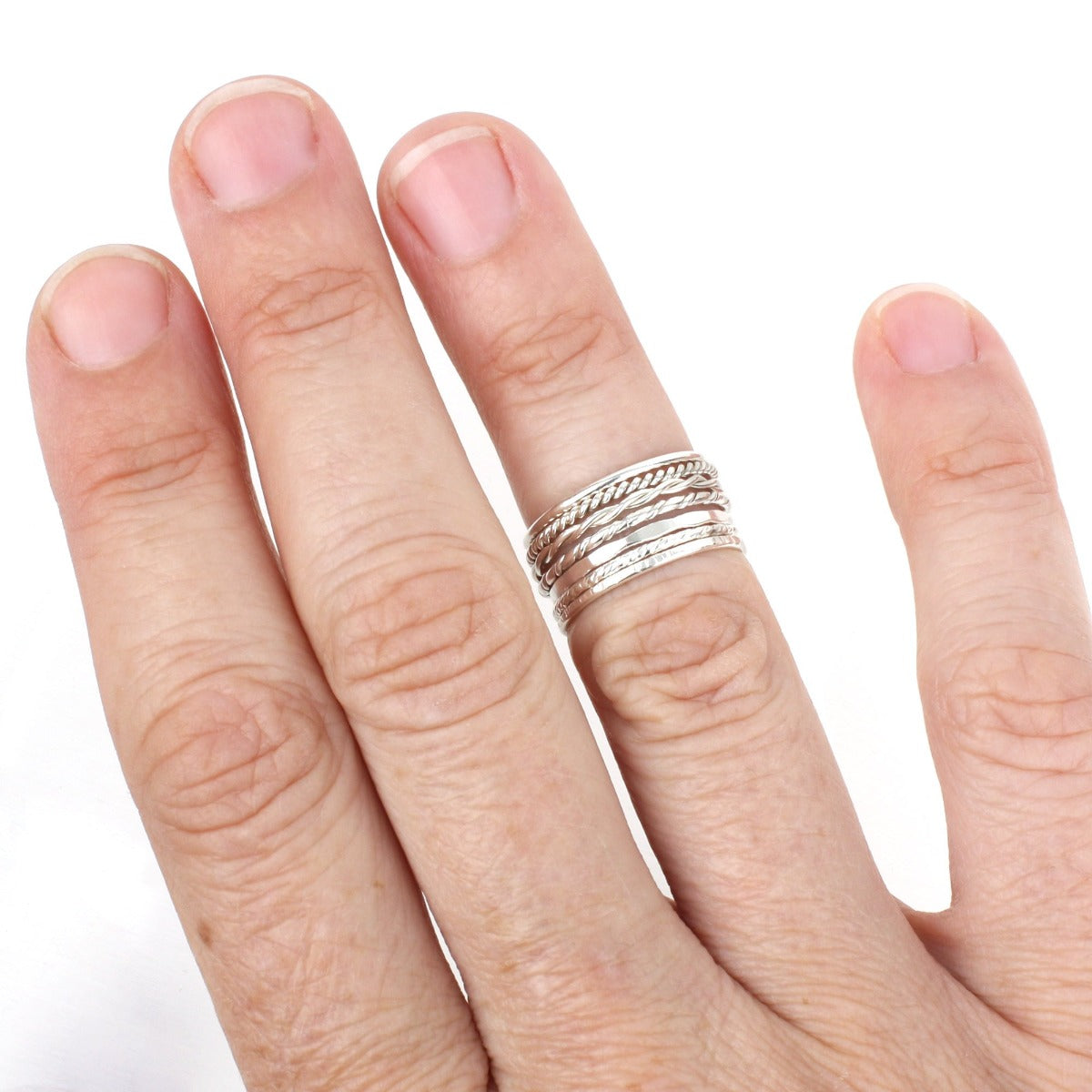 Add a single silver ring to your order - these skinny bands are designed to go with my stacking gemstone rings for an extra bit of pattern and detail. Or, mix and match to create your own custom silver stack. Choose from 7 patterns: