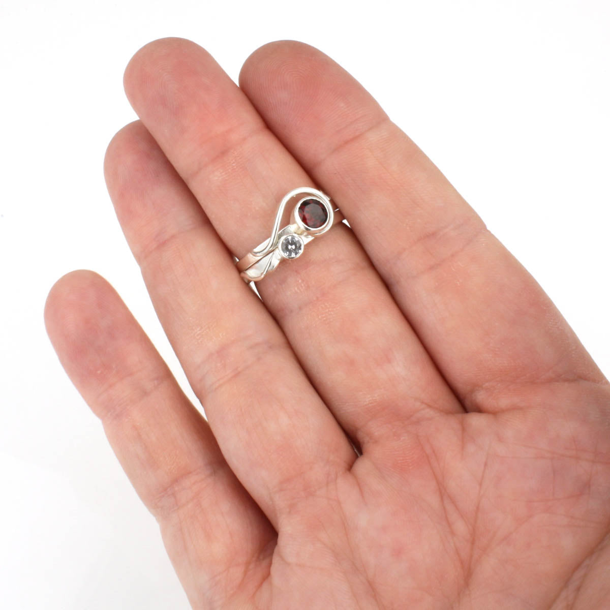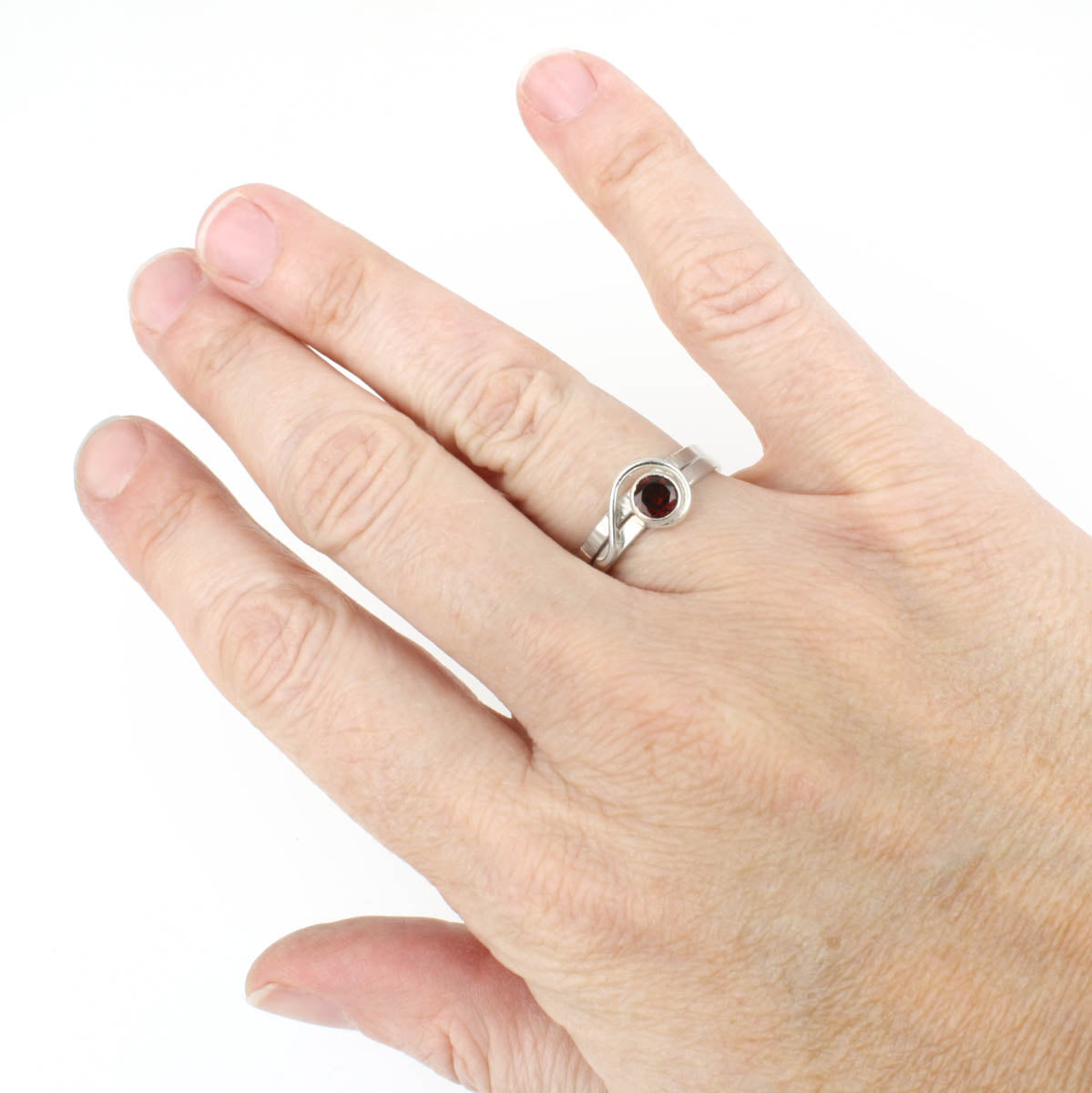 Spiral Ring with 5mm Garnet